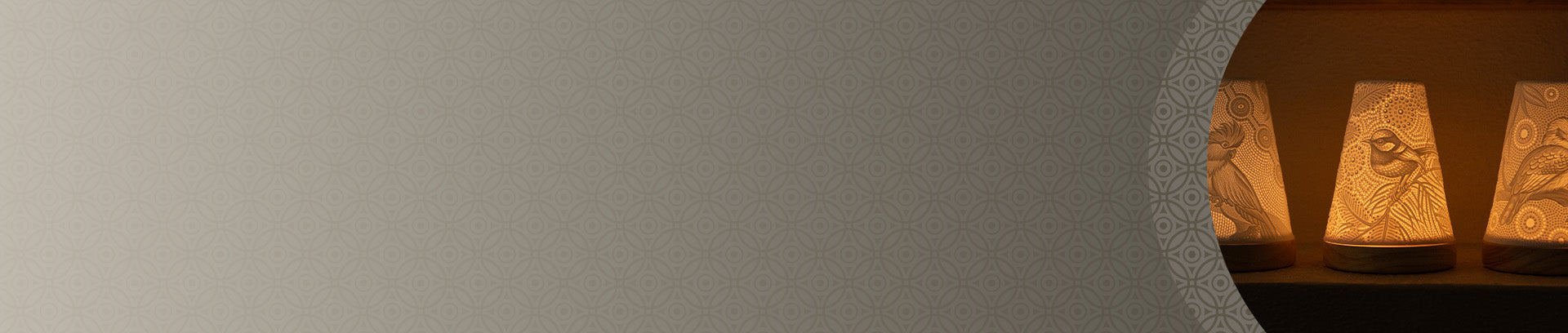 An artwork Minikin is perfect for those who crave colour in their life. Each lantern features vibrant artwork from prominent Australian artists. Original artwork is featured on the outside of the porcelain Minikin lantern. This style of Minikin adds a pop of colour by day and glows dramatically in the evening. In a similar way to the white porcelain Minikin, the artwork Minikin comes to life when the candle within flickers and burns.
