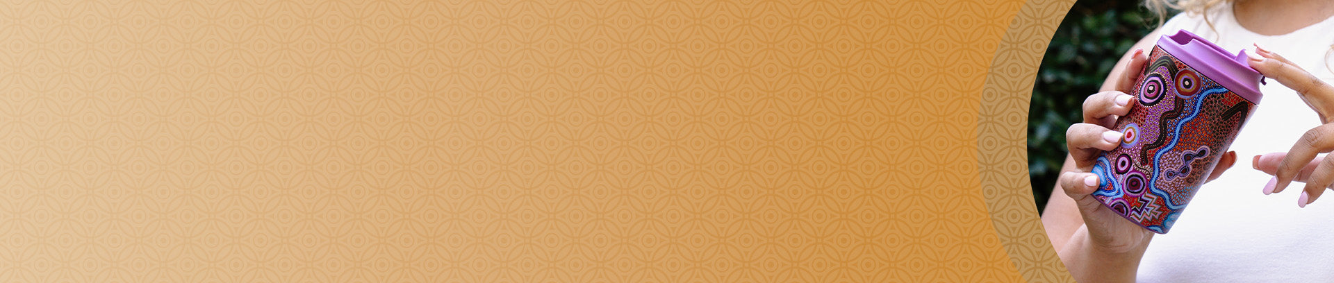 We believe the best travel mug strikes a perfect balance between aesthetic appeal and thermal efficiency, and our range of thermal mugs have the added bonus of featuring stunning Aboriginal Art for a truly unique product. Our Aboriginal travel mug designs not only tell a story with every sip, but they keep your drinks hot and help the environment by replacing single-use coffee cups.