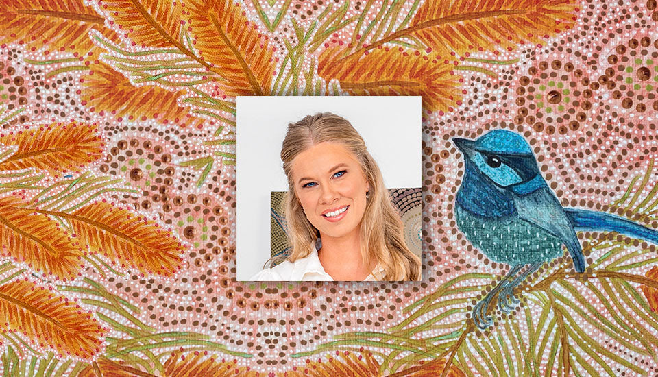 Melanie Hava, collaborative Aboriginal artist at Koh Living with Indigenous gift designs on sale now.